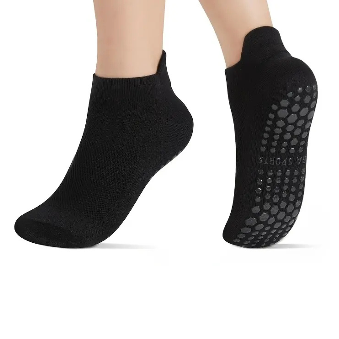 Voorkom uitglijden en behoud de juiste houding met het meegeleverde paar grip sokken. De antislipzool zorgt voor extra grip op de mat of vloer, waardoor je met meer vertrouwen je oefeningen uitvoert.